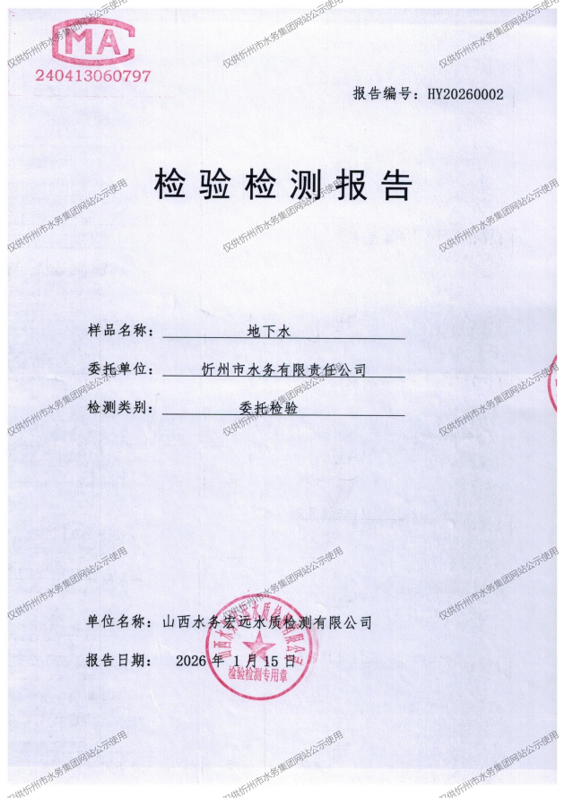 忻州城區(qū)公共供水水源水、出廠水、管網(wǎng)水、管網(wǎng)末梢水2026年1月份水質(zhì)信息公示