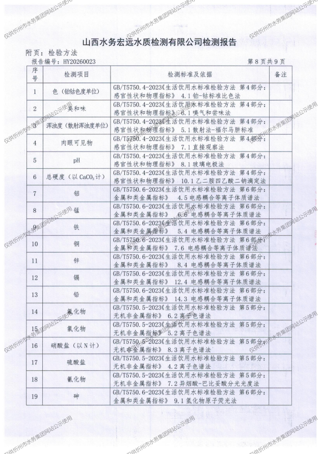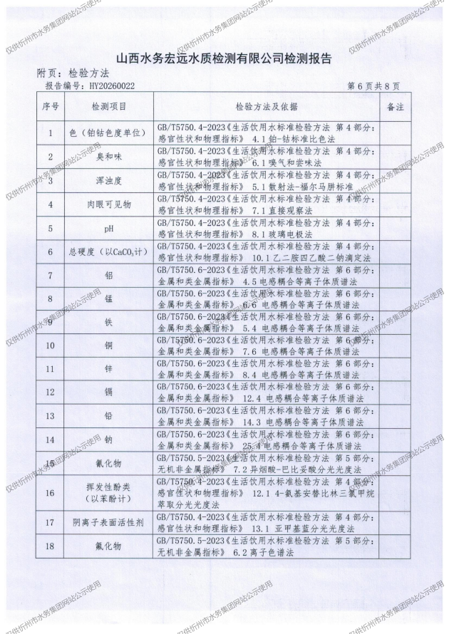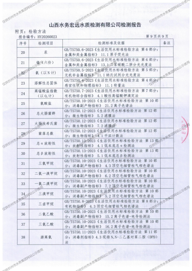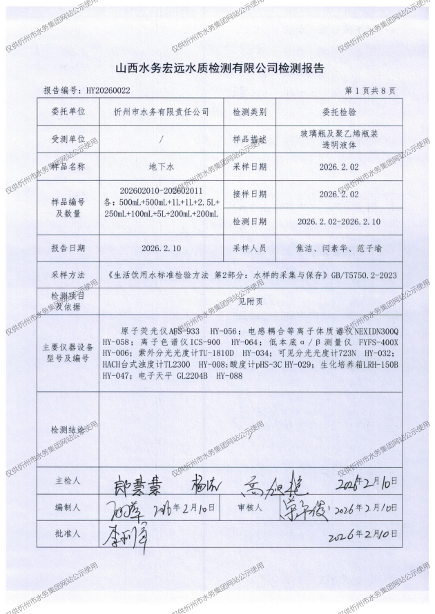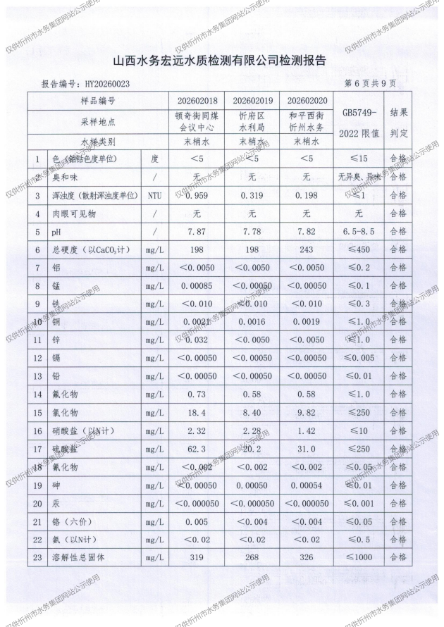 忻州城區(qū)公共供水水源水、出廠水、管網(wǎng)水、管網(wǎng)末梢水2026年2月份水質(zhì)信息公示